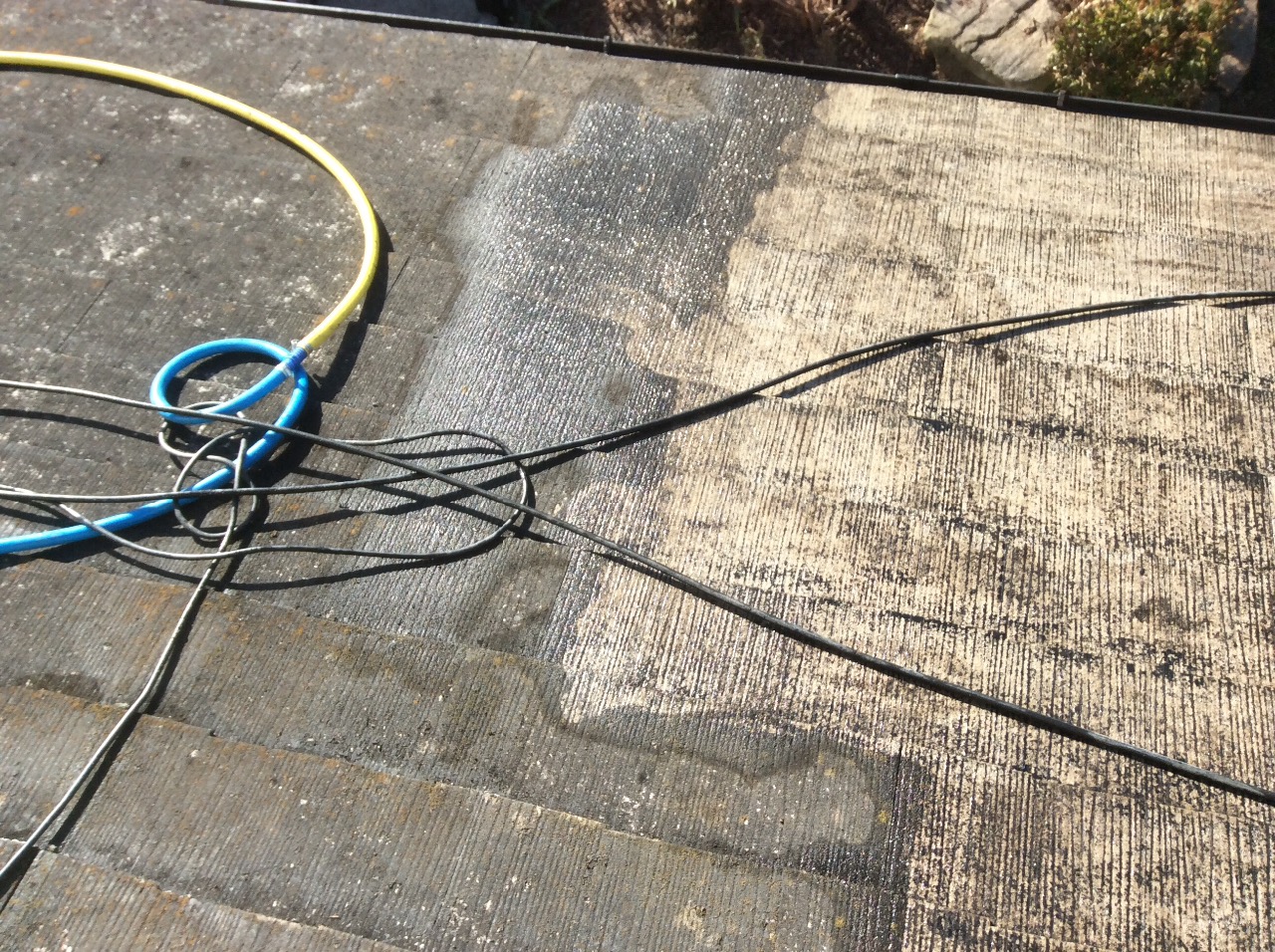 かなり苔が生えて汚れもひどくて、高圧洗浄の威力が発揮出来ます。明日、天気が良ければ屋根塗装を